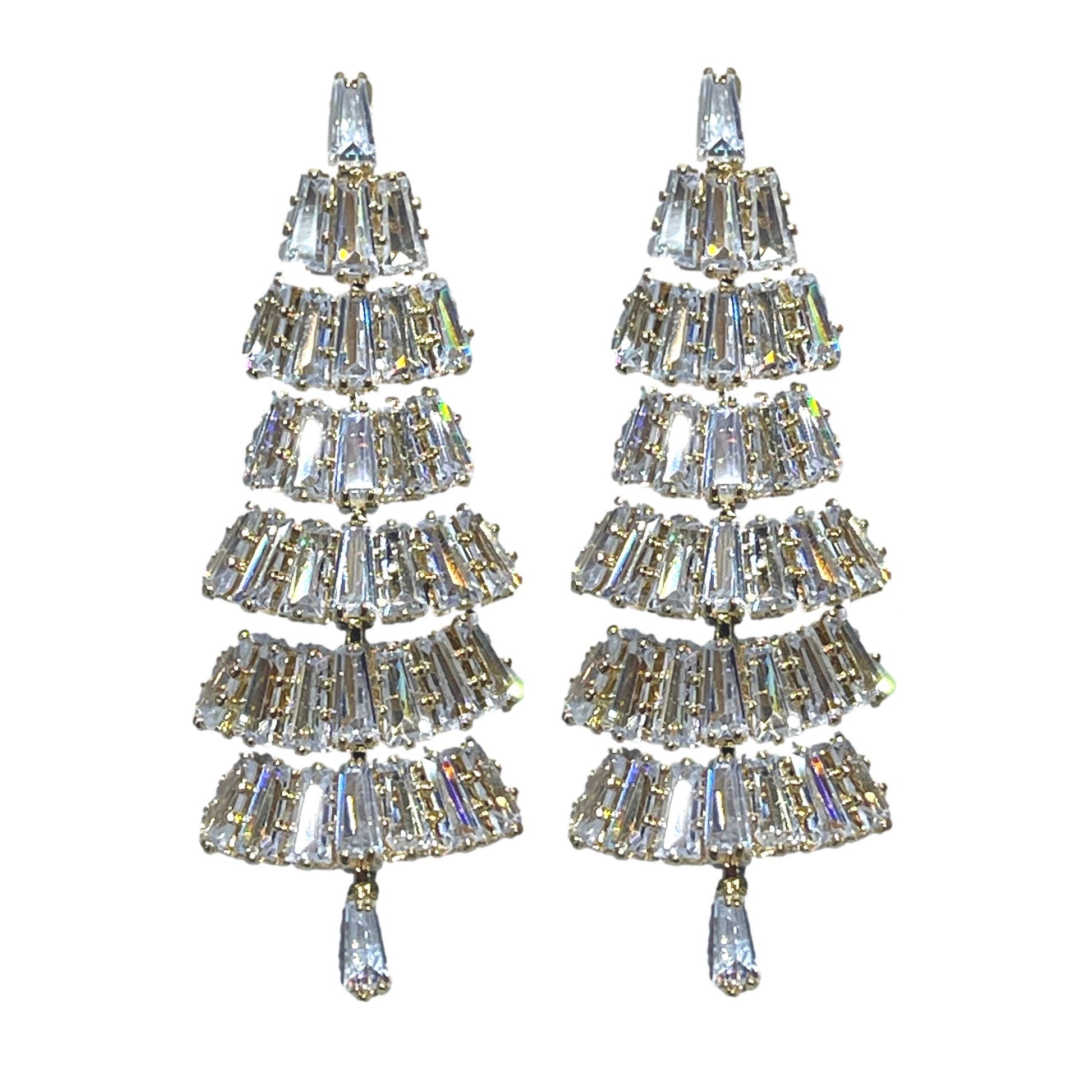 Baguette Crystal Christmas Tree Holiday Statement Earrings