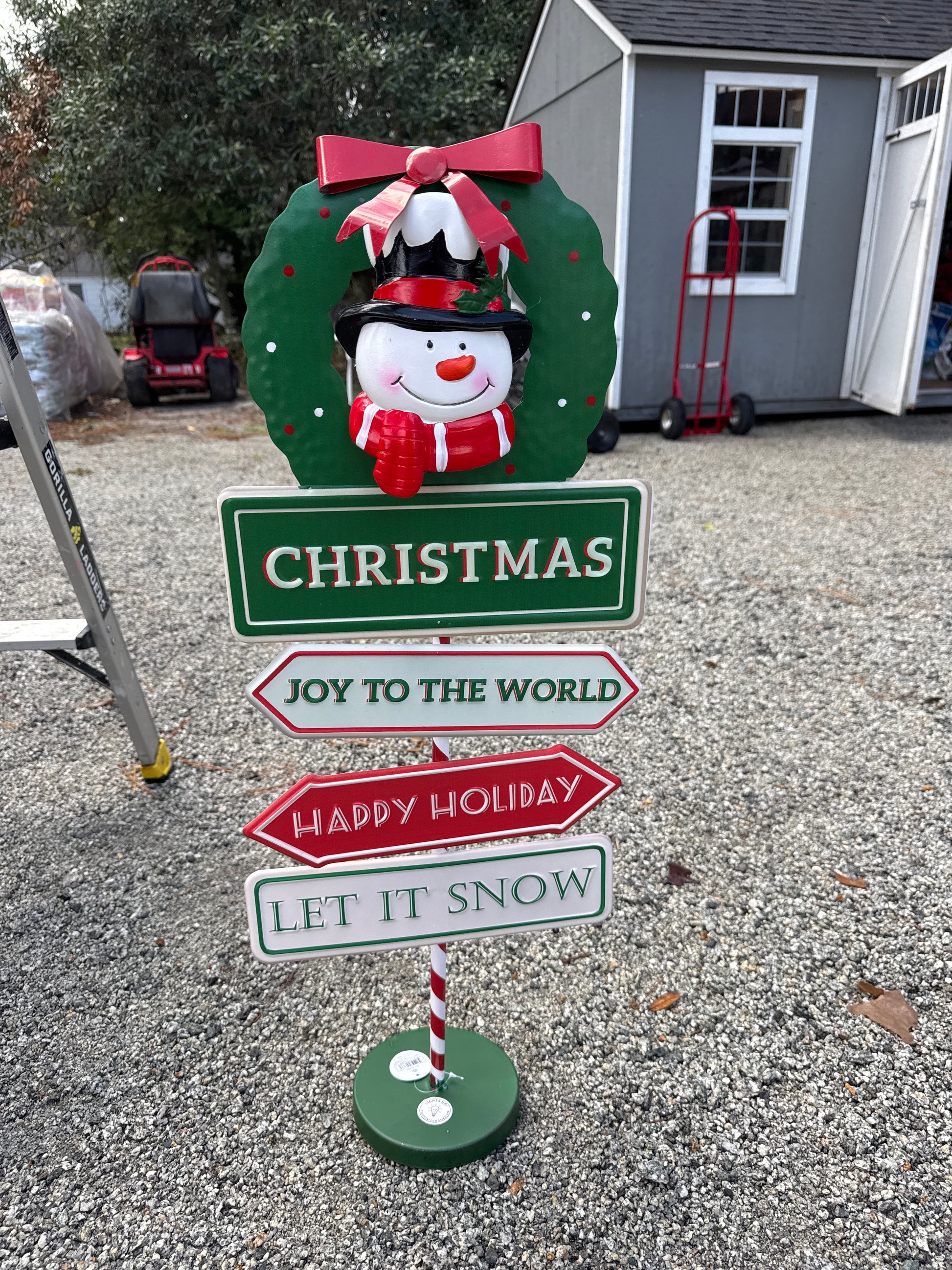 Add a playful and festive touch to your holiday décor with our Christmas Sign with Snowman Head. Featuring a cheerful snowman perched atop a classic Christmas message, this decoration is perfect for mantels, entryways, or wall displays.