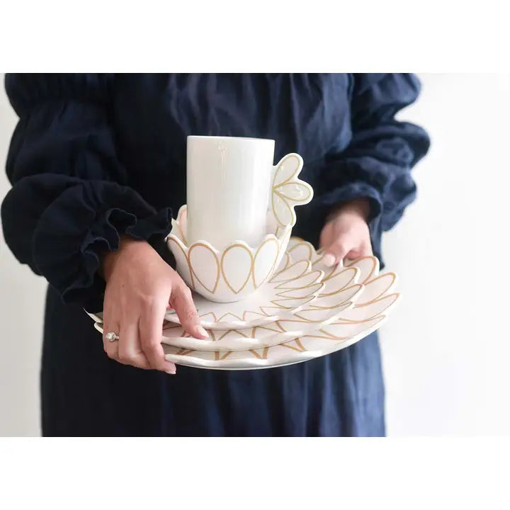 Bring warmth, elegance, and tradition to your table with our Deco Gold Scallop Platter. Whether you're serving Sunday dinner with the family or gathering with friends for a special celebration, this beautifully crafted 13” stoneware platter is made to make moments feel meaningful.