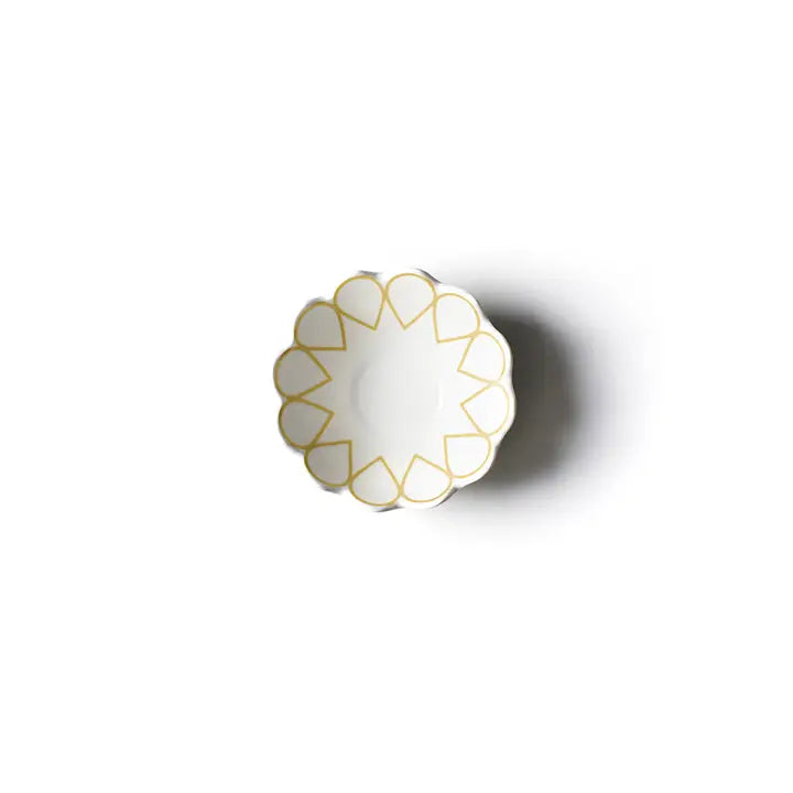 A little sparkle, a lot of heart—our Deco Gold Scallop Small Bowl is the perfect blend of beauty and everyday usefulness. With its soft white finish, elegant gold detailing, and gently scalloped edge, this charming bowl adds a timeless touch to your home.