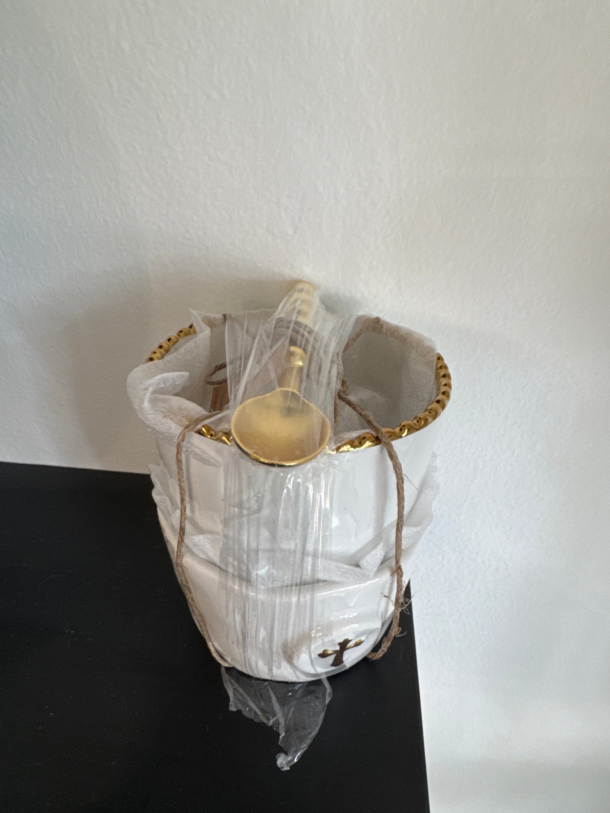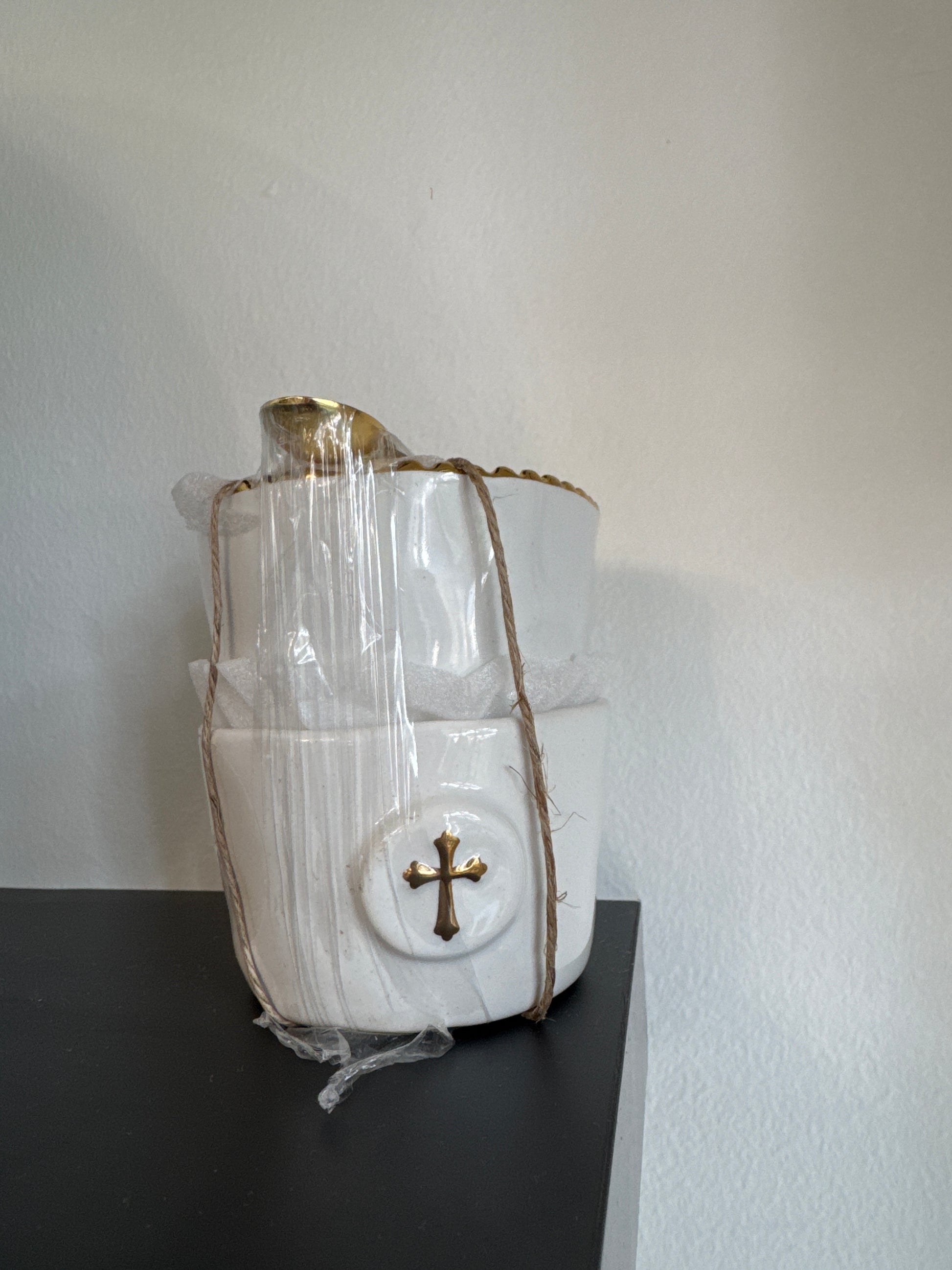 Add a touch of elegance and meaning to your table with the Cross Gold Bowl Set with Spoon by Mudpie. Featuring a beautifully designed bowl with a gleaming gold cross accent and a matching spoon, this set is perfect for serving dips, sauces, or small treats. Its timeless design makes it ideal for holidays, celebrations, or everyday gatherings where faith and family are at the heart of the table. A thoughtful gift for weddings, housewarmings, or special occasions.