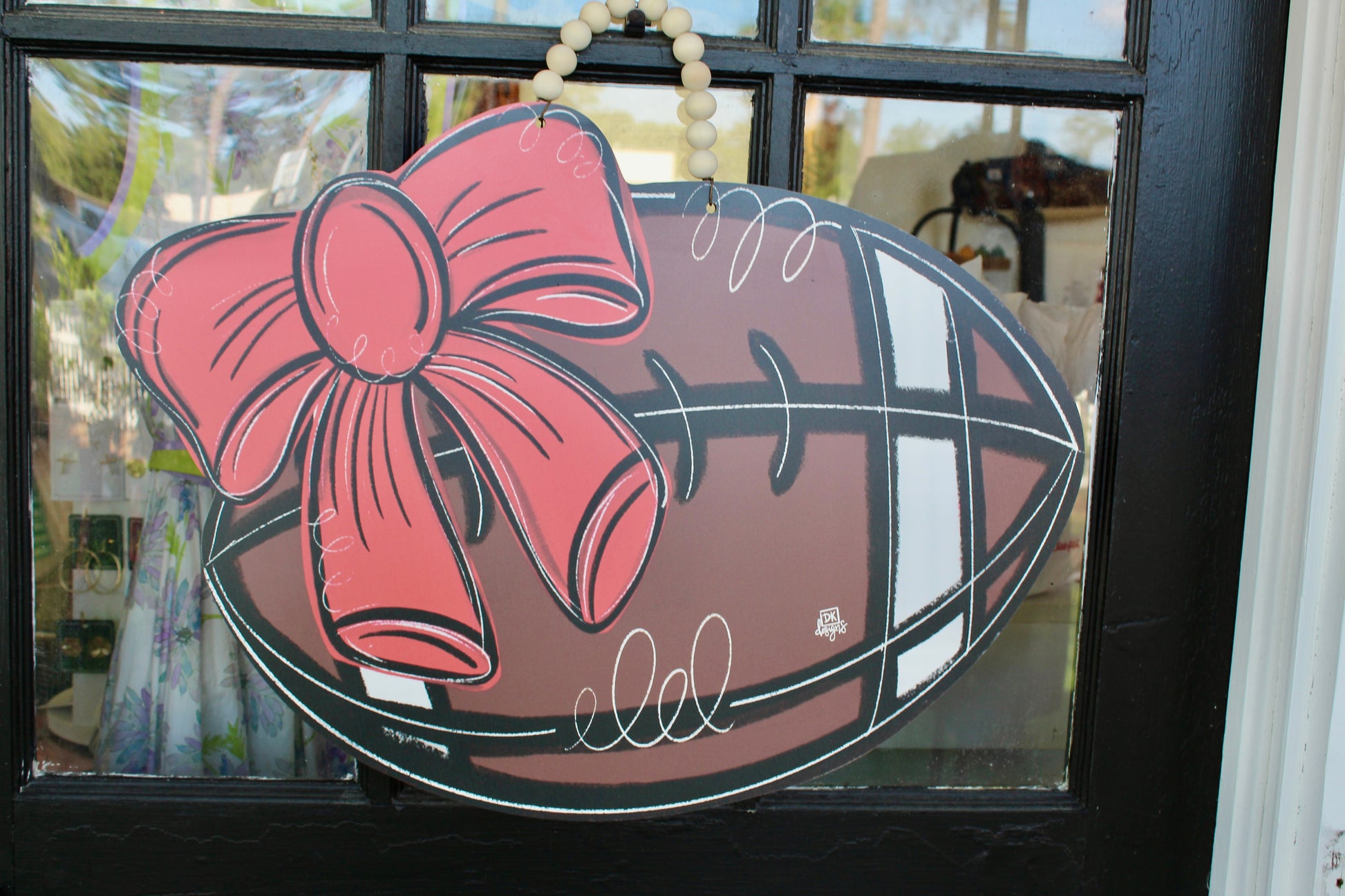 Cheer on your team in style with our Football Bow in classic red and black! Perfect for game days, tailgates, or showing school spirit all season long, this bow adds a festive touch wherever you place it—on a door hanger, wreath, gift, or even as party décor. A simple yet bold way to celebrate football season, southern traditions, and those unforgettable Saturday nights.