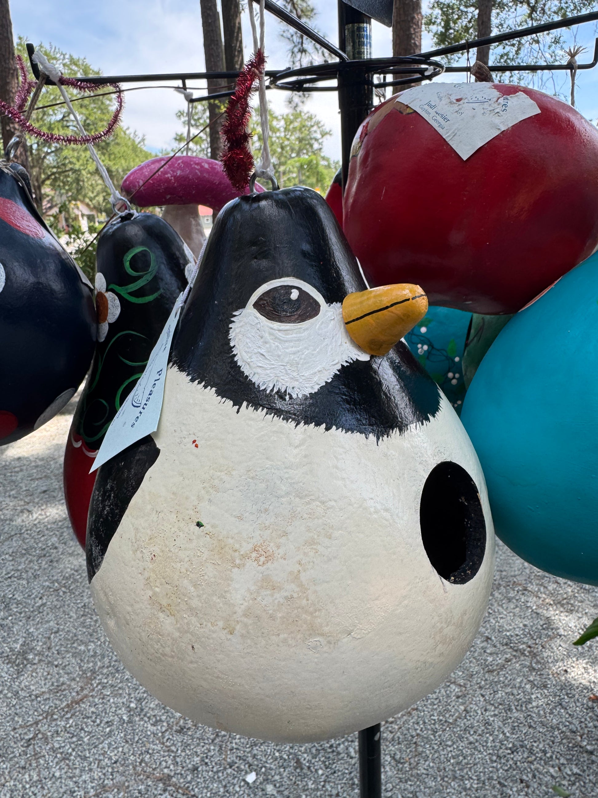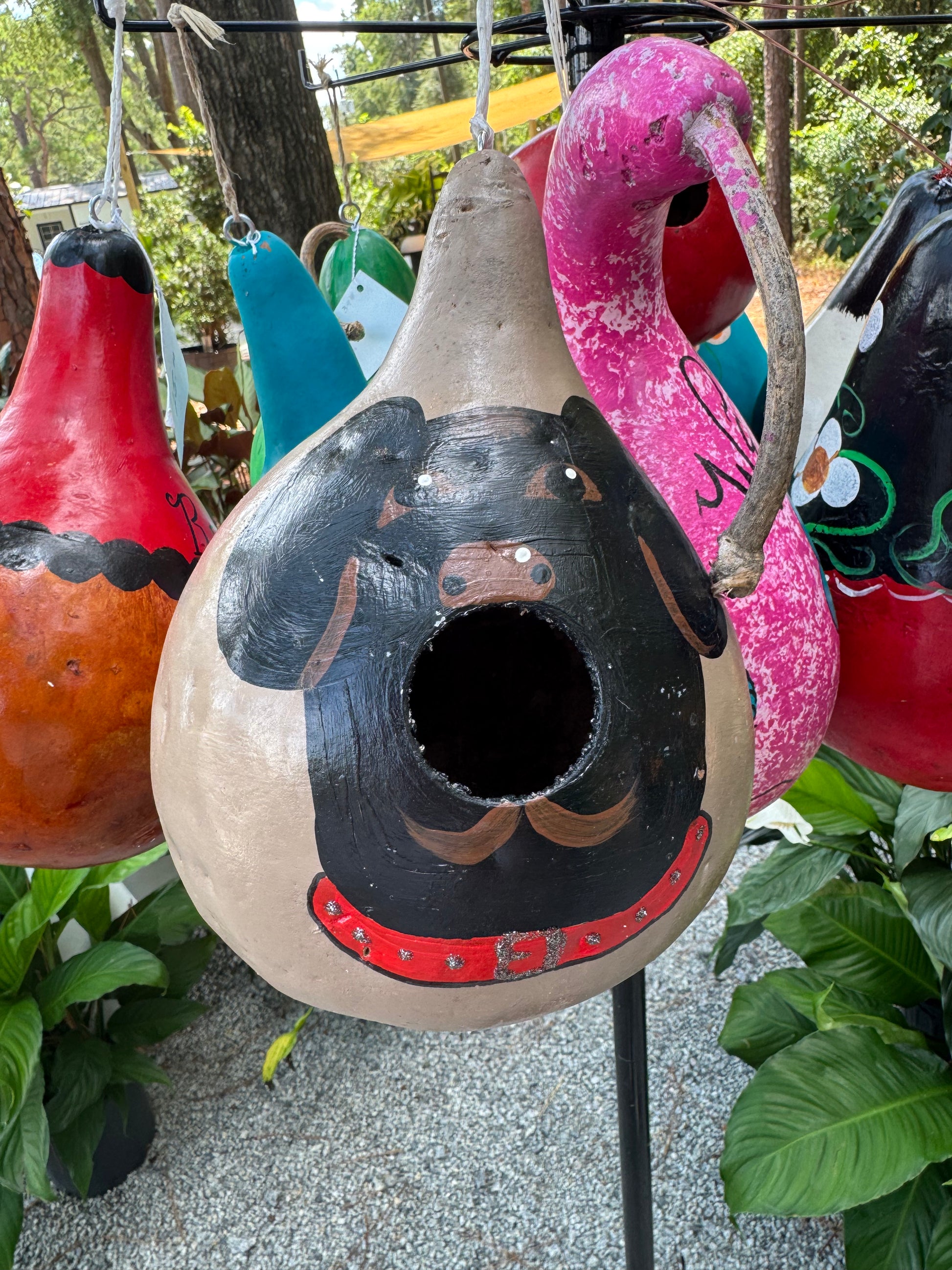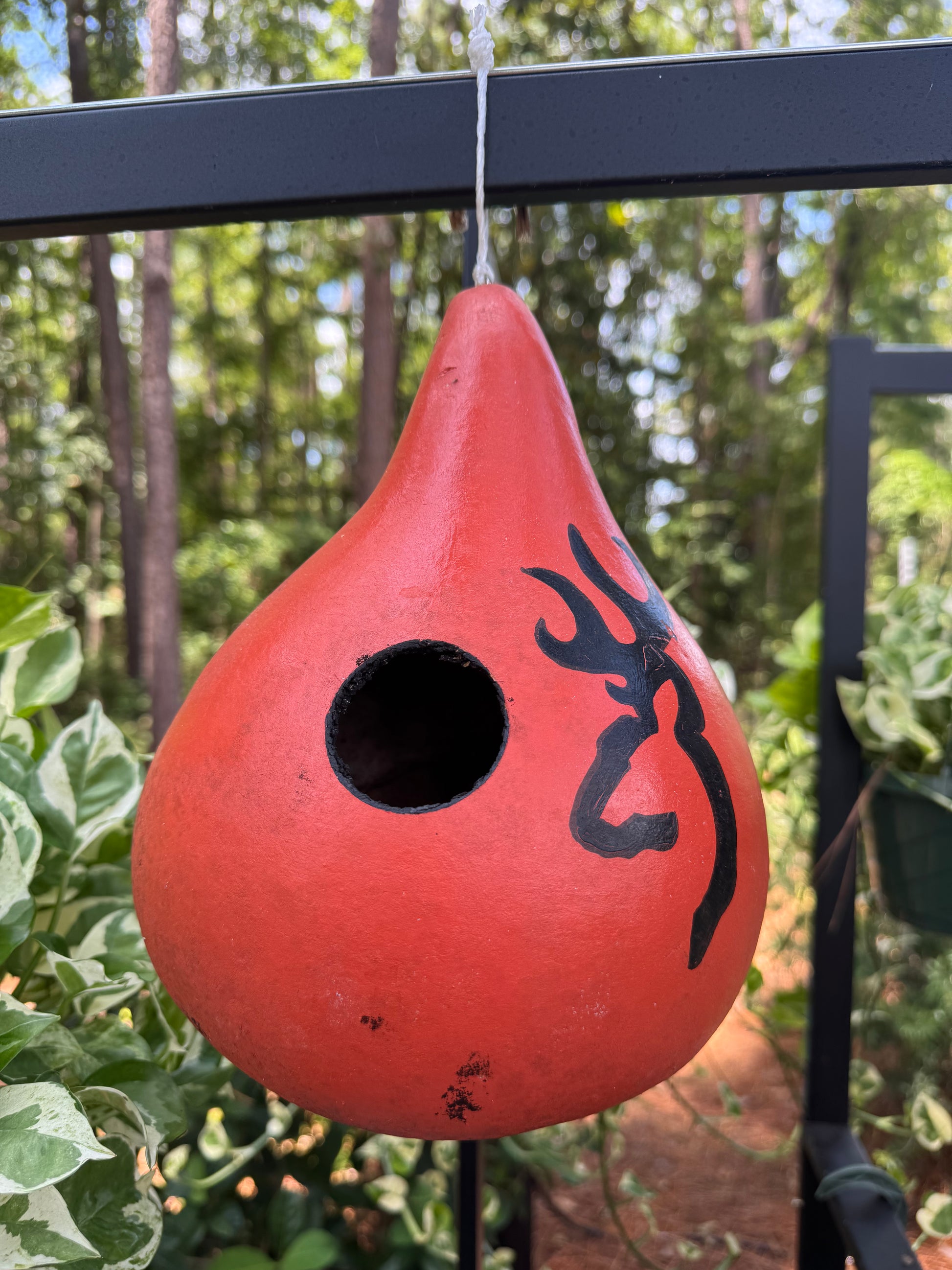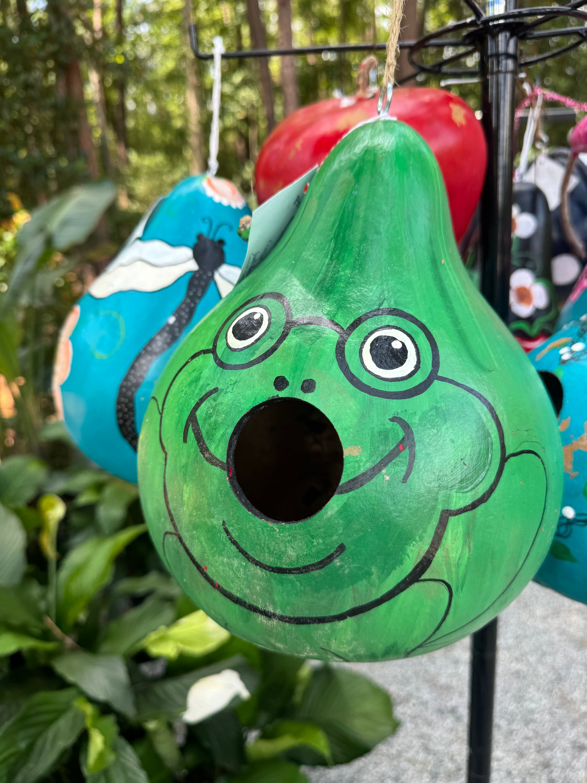 Gourd bird houses have been used for centuries, dating back to Indigenous peoples in North America who discovered that dried gourds made excellent nesting spaces for small birds—especially the sociable purple martin. Over time, this practice became a beloved folk art in the South, blending utility with creativity. Today, Judi carries on that tradition with her own unique flair, transforming each gourd into a cozy, weather-ready home for your feathered friends.