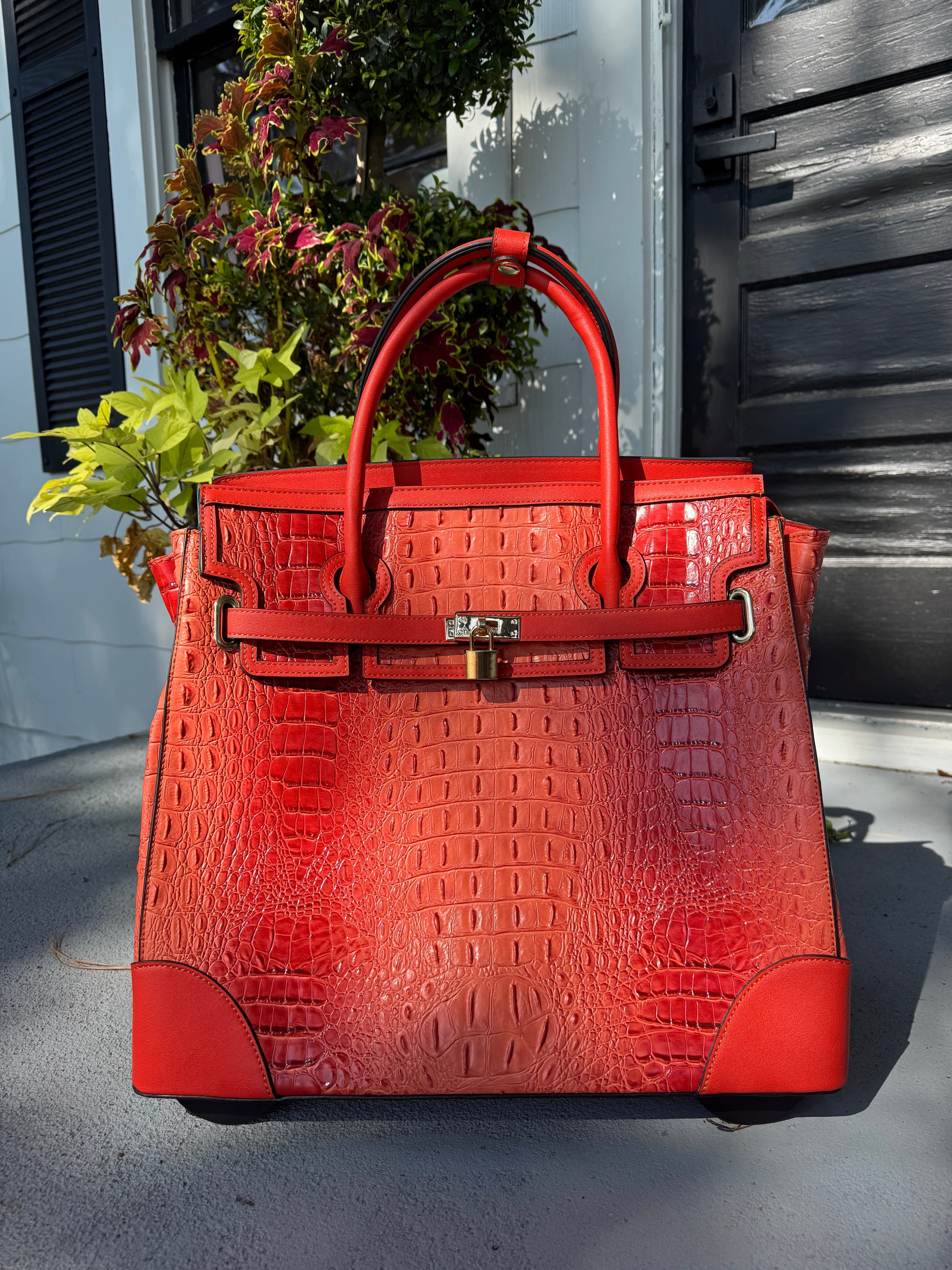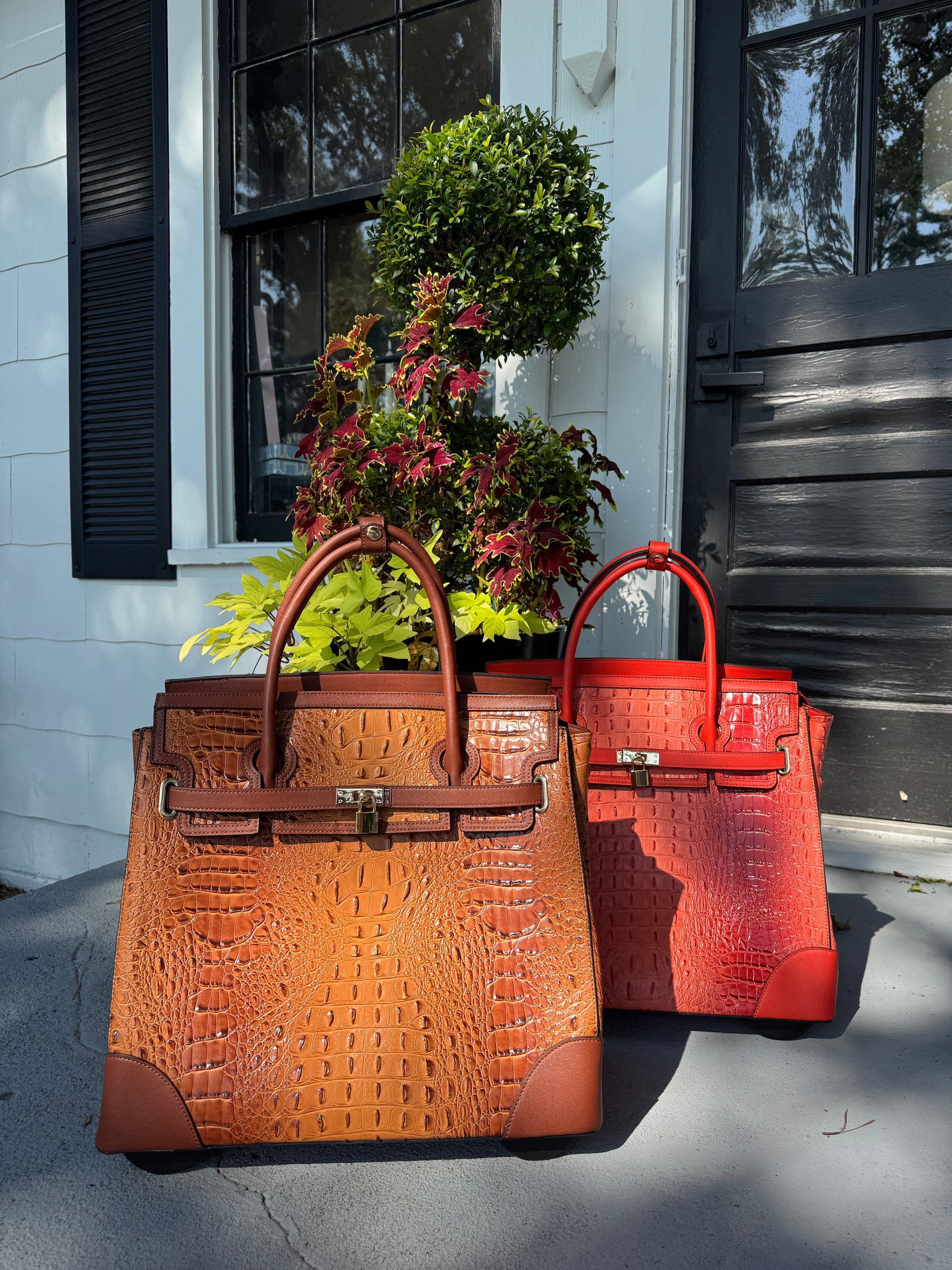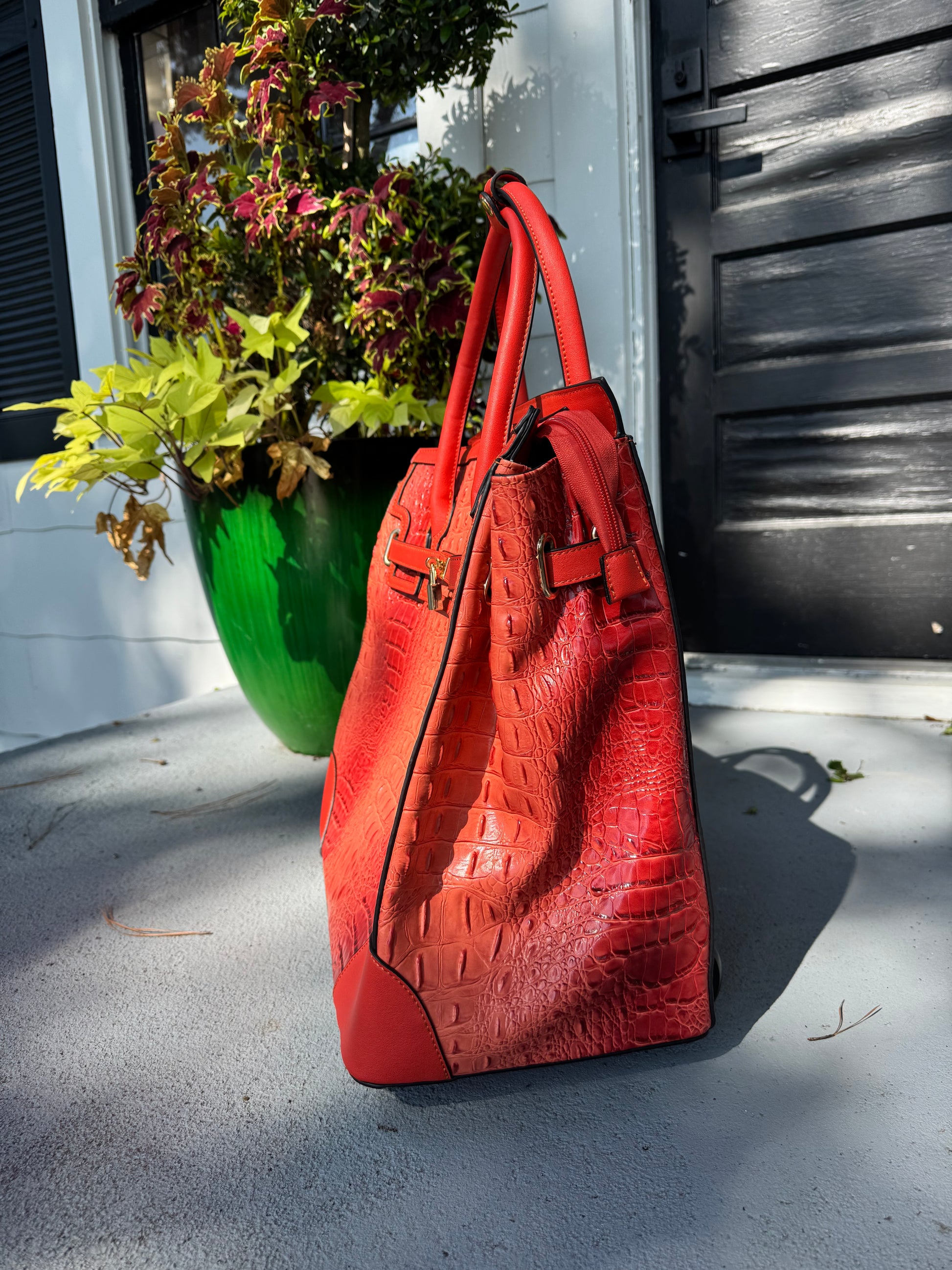 Where timeless charm meets modern travel. The Savannah Jetsetter is a rolling tote designed for the woman who carries a bit of Southern grace wherever she goes. With its rich brown hue or Coral, and classic, structured silhouette, this beauty calls to mind vintage train cases and well-worn leather trunks—reimagined for today’s journeys.