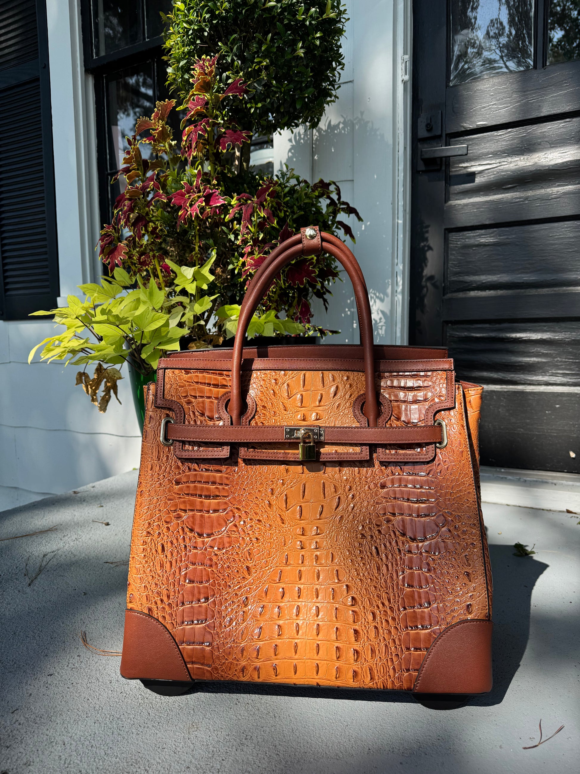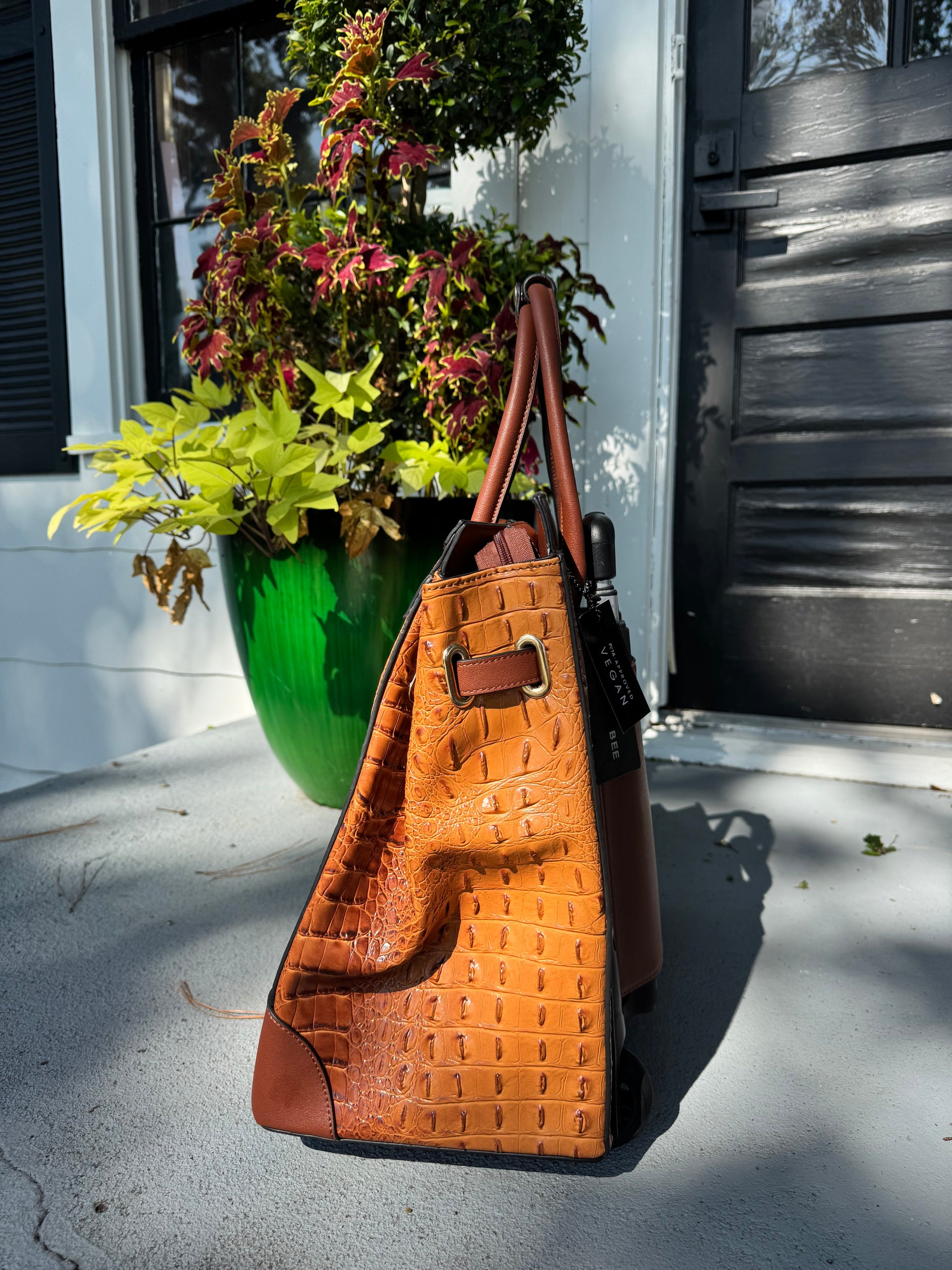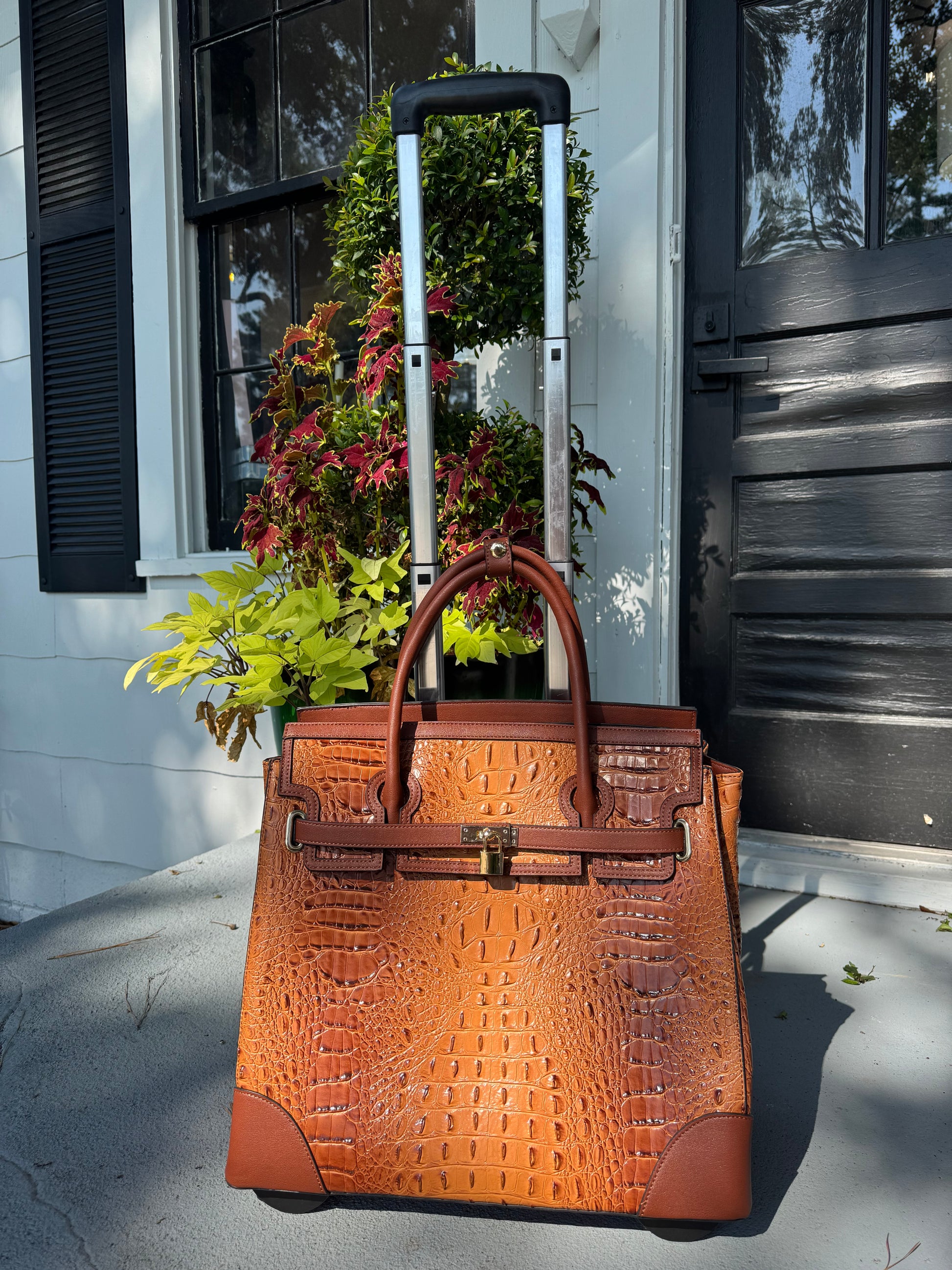 Smooth-gliding wheels and a discreet telescoping handle make it easy to roll through airports or down cobblestone streets, while gold-toned accents add a touch of sophistication. Whether you’re headed to a weekend in the lowcountry or catching a flight to somewhere grand, The Savannah Jetsetter promises to keep your essentials close and your style polished.