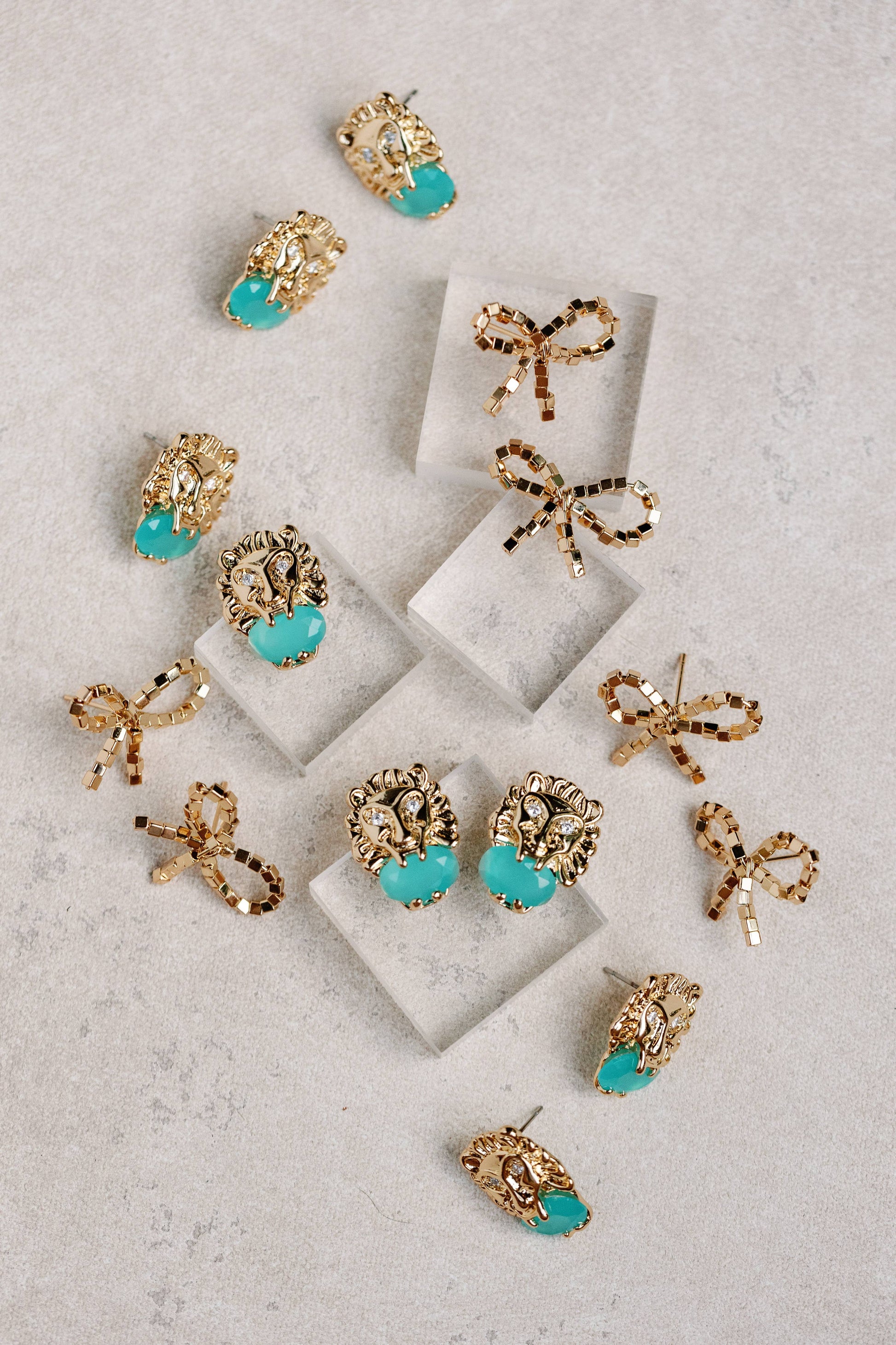 Channel a touch of retro glamour with these 80’s-inspired Lionhead Stud Earrings. Featuring a striking turquoise stone set against a luxurious shiny gold finish, these earrings bring bold style in a perfectly compact 1-inch size. Ideal for everyday wear or whenever your outfit needs a pop of color and shine.