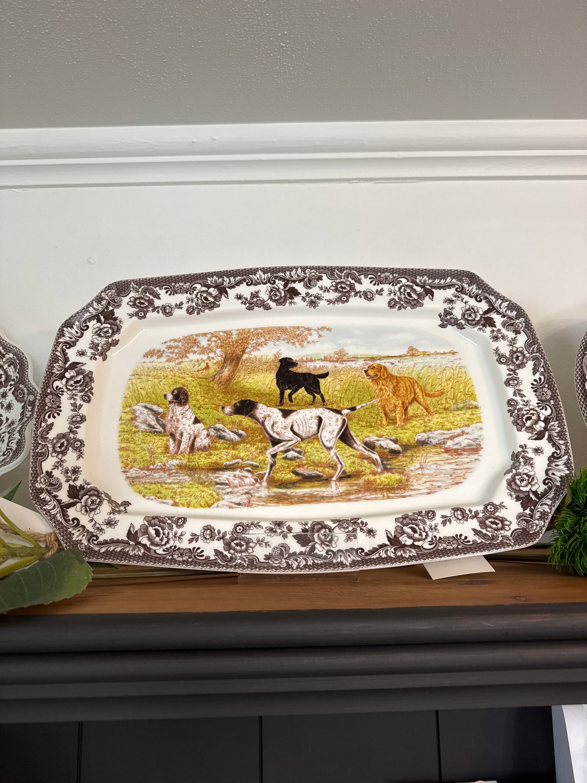 Bring a touch of rustic elegance to your table with the Spode Woodland Dogs Rectangular Platter, a beautifully detailed 17.5" porcelain piece that celebrates the charm of classic country living. Whether for everyday meals or special gatherings at Wright’s Market, this platter makes a delightful centerpiece rooted in warmth and Southern hospitality.